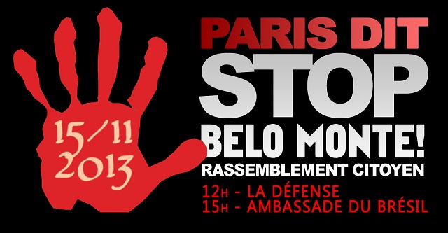 En réaction, Planète Amazone et les bénévoles de l’initiative européenne Arrêtons l’Ecocide en Europe invitent toutes les organisations et militants soucieux de la préservation de l’environnement à s’unir pour un rassemblement citoyen le 15 novembre 2013, à Paris, autour d’Antonia Melo, la grande militante du Mouvement Xingu Vivant Pour Toujours (Movimento Xingu Vivo para Sempre).