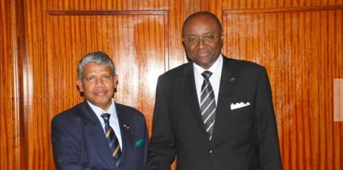AR Ghanashyam avec Moukoko Mbonjo, ministre des Relations Extérieures du Cameroun