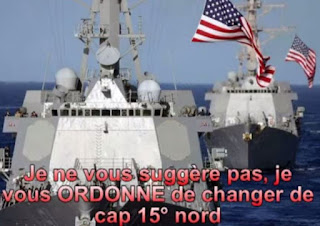 Présomptueux qu’ils sont, les Américains envoient balader l’Espagnol lui rappelant qu’il s’adresse au capitaine du second porte-avion le plus important de la marine des États-Unis et qu’il est escorté de plusieurs navires de guerre, destroyers, sous-marins…Etc.